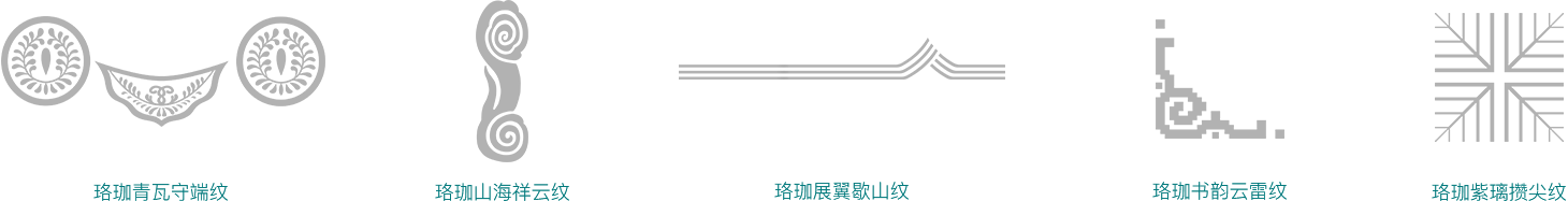 辅助图形主要有珞珈青瓦守端纹、珞珈山海祥云纹、珞珈展翼歇山纹、珞珈书韵云雷纹、珞珈紫璃攒尖纹等5种,使用时应遵守辅助图形规范。